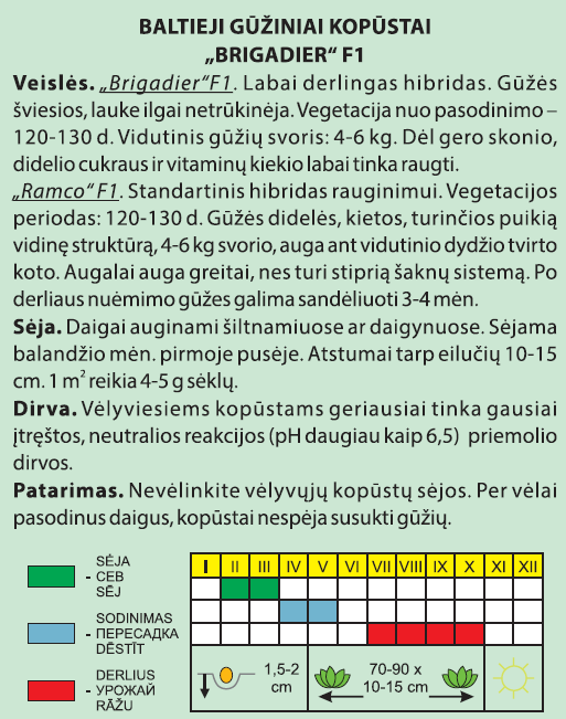 Baltieji gūžiniai kopūstai. Išfasuota po 30 sėklų